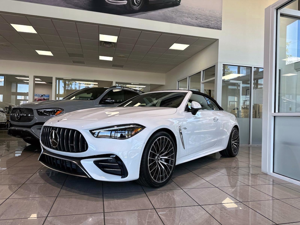 3.0L I6 Turbo, 11.9" Center Touchscreen Display, 15 Speakers, 3 USB-C Ports, 4-Wheel Disc Brakes, ABS brakes, Adaptive suspension, Air Conditioning, Alloy wheels, AM/FM Radio, AM/FM radio: SiriusXM w/360L, Apple CarPlay®/Android Auto®, Auto High-beam Headlights, Auto tilt-away steering wheel, Auto-dimming door mirrors, Auto-dimming Rear-View mirror, Automatic temperature control, Black Fine Structure Center Console, Brake assist, Bumpers: body-color, Child-Seat-Sensing Airbag, Compass, Convertible roof lining, Convertible roof wind blocker, Delay-off headlights, Driver door bin, Driver vanity mirror, Dual front impact airbags, Dual front side impact airbags, Electronic Stability Control, Emergency communication system: Mercedes-Benz Emergency Call Service, Exterior Parking Camera Rear, Four wheel independent suspension, Front anti-roll bar, Front Bucket Seats, Front Center Armrest, Front dual zone A/C, Front reading lights, Fully automatic headlights, Garage door transmitter: HomeLink, Glass rear window, HD Radio, Head restraints memory, Heated door mirrors, Heated Front Seats, Heated front seats, Illuminated entry, Integrated roll-over protection, Knee airbag, Leather steering wheel, Low tire pressure warning, MB Navigation, MB-Tex/Microfiber Upholstery w/Red Stitching, Memory seat, Navigation system: MBUX, Occupant sensing airbag, Outside temperature display, Overhead airbag, Overhead console, Panic alarm, Passenger door bin, Passenger vanity mirror, Power adjustable front head restraints, Power convertible roof, Power door mirrors, Power driver seat, Power passenger seat, Power steering, Power windows, Radio data system, Rain sensing wipers, Rear anti-roll bar, Rear fog lights, Rear window defroster, Remote keyless entry, Security system, SiriusXM Satellite Radio, Speed control, Speed-sensing steering, Split folding rear seat, Spoiler, Sport steering wheel, Steering wheel memory, Steering wheel mounted audio controls, Tachometer, Telescoping steering wheel, Tilt steering wheel, Traction control, Trip computer, Turn signal indicator mirrors, Variably intermittent wipers, Wheels: 19" AMG® Multi-Spoke w/Black Accents, Wireless Android Auto®, Wireless Apple CarPlay®, 3.0L I6 Turbo.